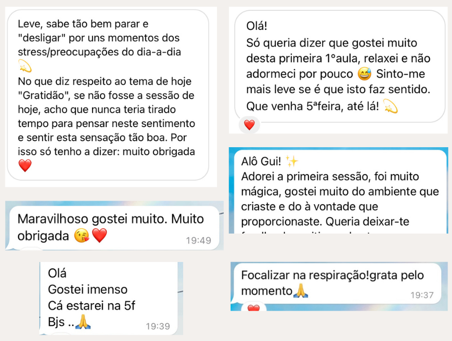 Não é necessária qualquer experiência, todas as práticas são guiadas a cada momento.